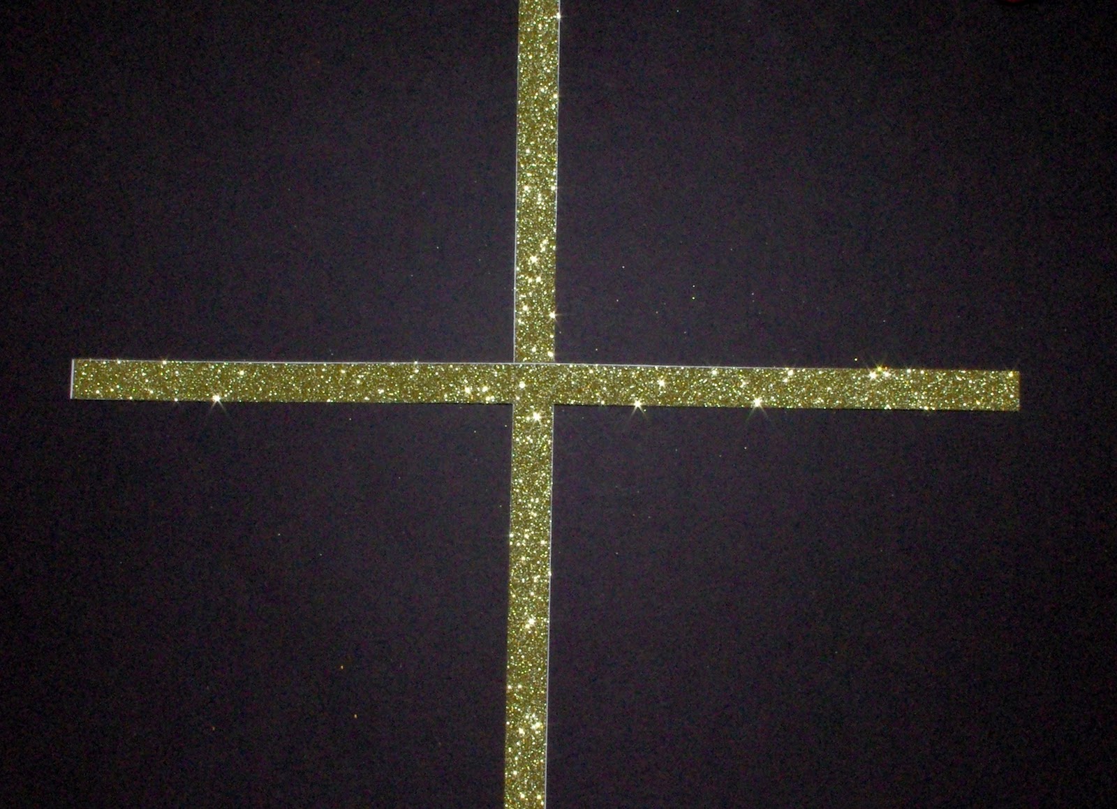 All you’ll need to make this gorgeous star is a sheet of 12″ x 12″ glittered cardstock, scissors and glue (hot glue works best). If you have single sided glitter paper you will need to glue two sheets back-to-back to create a double sided sheet.